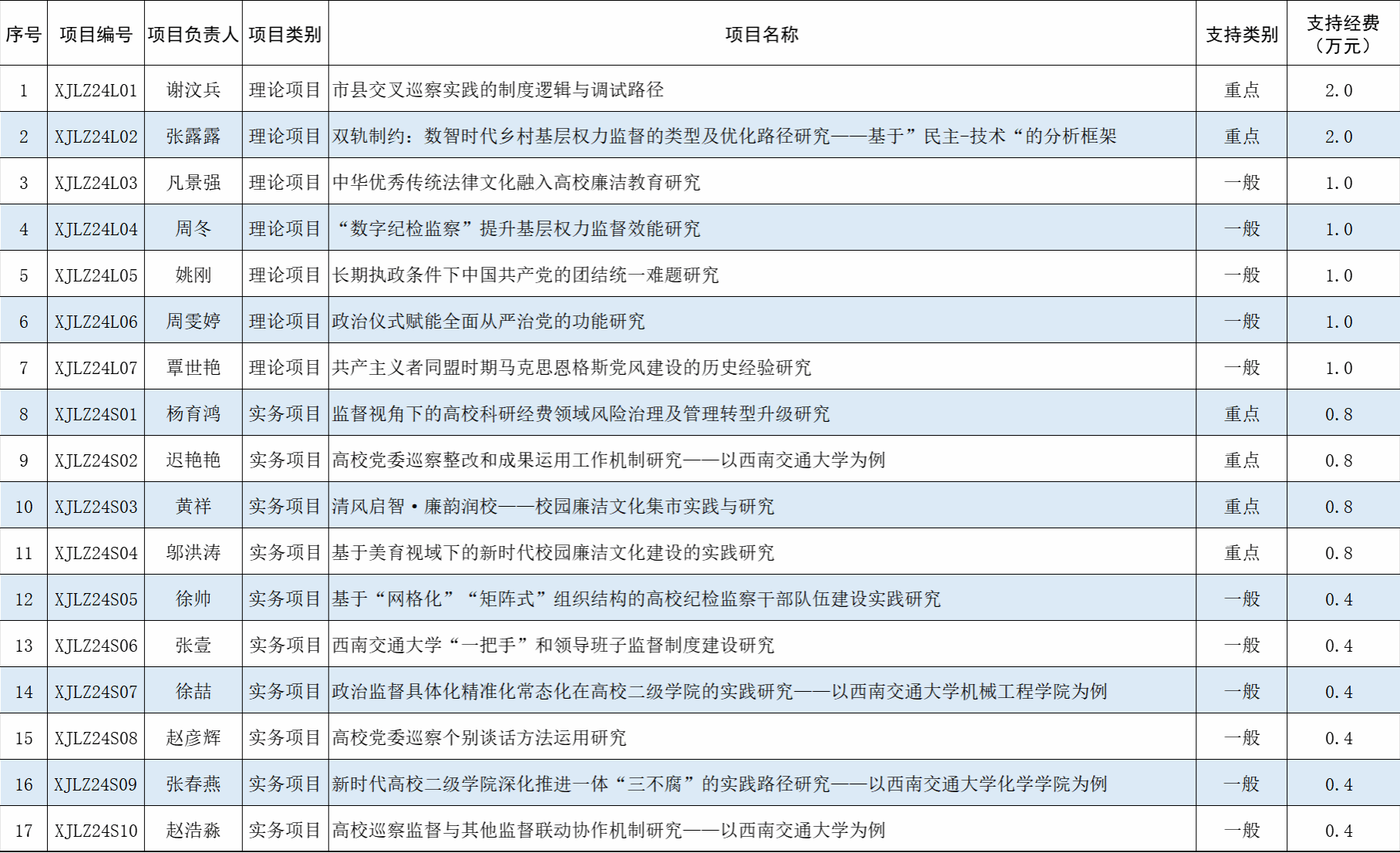 2024年度科学研究基金(廉政与治理专项)立项结果