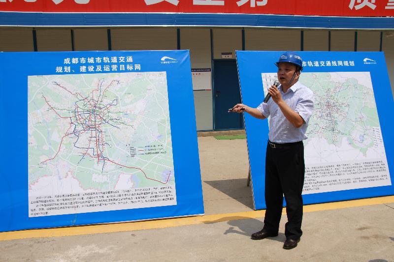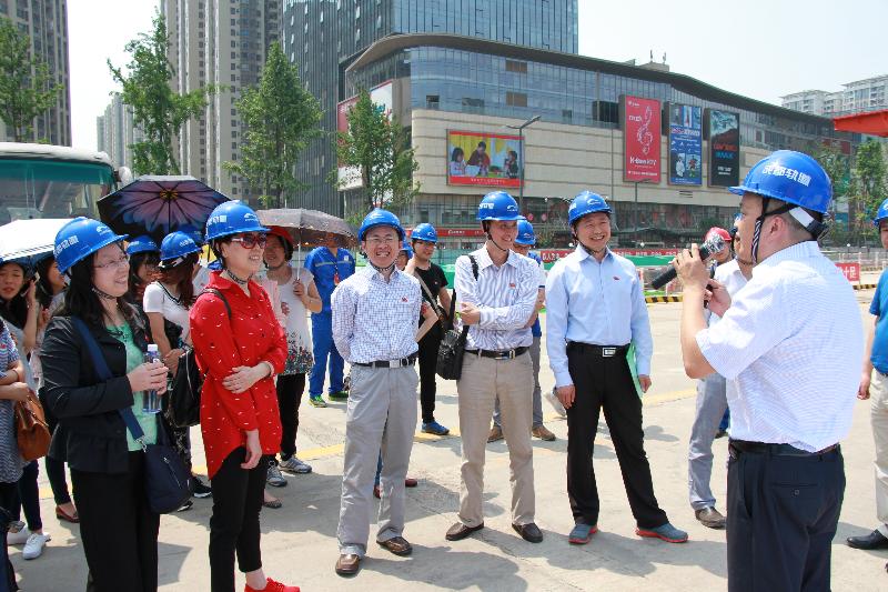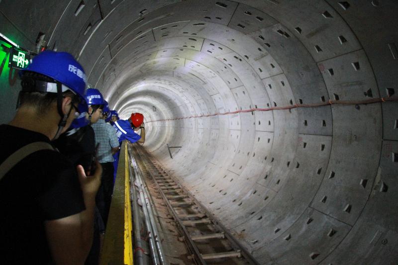 本次活动第一站,来自交大的党员同志们在成都轨道交通集团建设公司党委书记、总经理、教授级高工张延校友的陪同下来到成都地铁5号线大源站建设工地,深入在建隧道内部,与地铁建设“神器”盾构机亲密接触。张延校友顶着烈日给来自母校的师生详细的介绍了成都地铁发展历程、在建进展以及未来的发展规划。