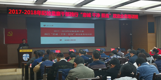 11月21日下午,由学校纪委、学校党校联合主办的2017—2018年纪检监察干部践行“忠诚·干净·担当”政治业务培训班在犀浦校区综合楼148会议室举行了专题培训会和结业仪式。