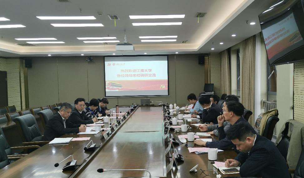 2019年10月21日下午,结合“不忘初心、牢记使命”主题教育,江南大学党委副书记、纪委书记刘淼,纪委副书记、纪委办主任、监察处处长、党委巡察办主任丁文勤和机关党委书记周建中一行八人到校调研交流纪监巡察工作。学校党委副书记、纪委书记张学龙,纪委副书记兼党委巡察办主任李立,纪委副书记兼纪委办主任李琦和纪监巡部门其他同志出席了交流会。交流会在综合楼604会议室进行,由张学龙书记主持。