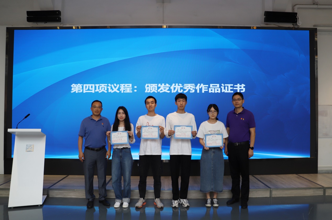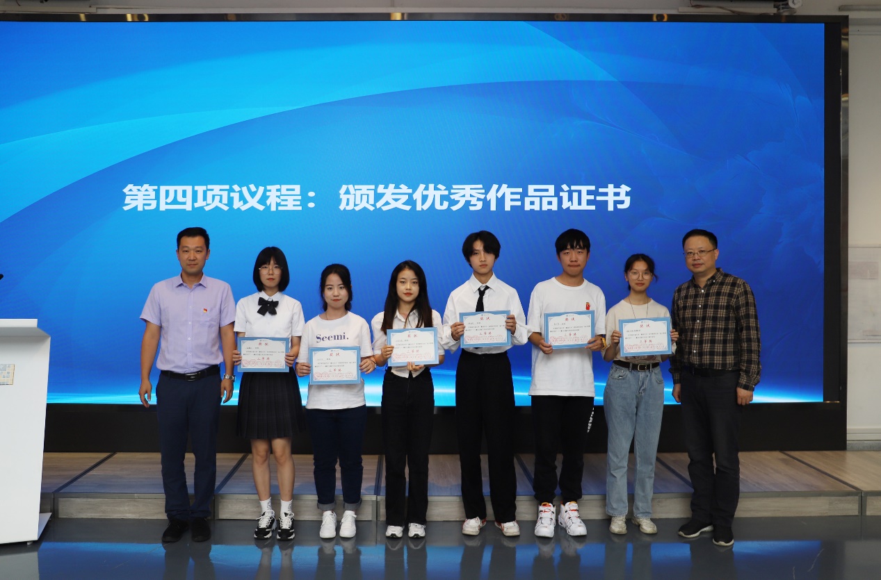 本次艺术设计展共收到来自全校师生的125件作品,最终遴选出56幅高质量作品入展。建筑与设计学院党委书记吴晓雄在颁奖仪式上公布了获奖作品名单。出席的领导为12名获奖同学颁发证书。获得一等奖的吕薇同学作为获奖代表发言,讲述了参加本次活动的心得体会。