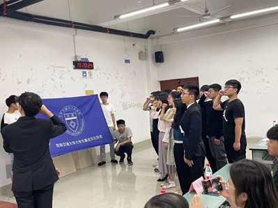 会议进行了新一届主席团和各部门负责人的竞聘选举。经前期的综合考评、学院意见反馈、综合成绩考量以及现场答辩情况,15位参与竞选的同学均符合参选要求,并依次答辩。答辩结束后,参选同学面对团旗庄严宣誓:“我自愿加入大学生廉洁文化协会,遵守协会章程,履行会员义务;严守纪律规矩,自觉抵御诱惑;弘扬廉洁文化,倡导清风正气;主动担当作为、共建廉洁校园……”。