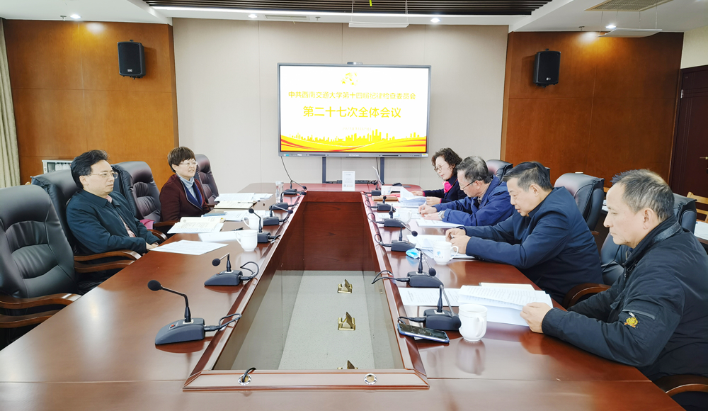 2021年11月29日,学校第十四届纪律检查委员会第二十七次全体会议在犀浦校区综合楼711室召开,深入学习党的十九届六中全会精神。会议由校党委副书记、纪委书记张学龙主持。