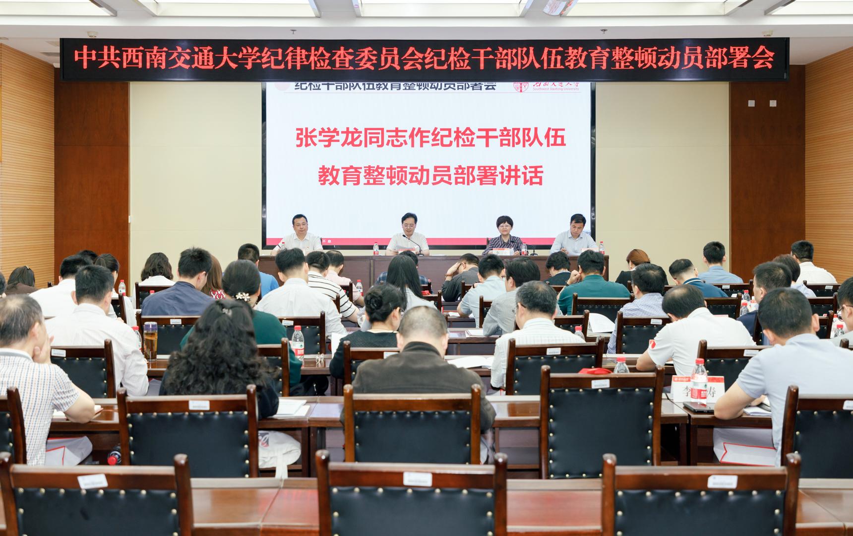 4月18日上午,学校纪委在犀浦校区综合楼148会议室召开纪检干部队伍教育整顿动员部署会。校党委副书记、纪委书记张学龙动员部署纪检干部队伍教育整顿工作。会议由校纪委副书记李立主持。
