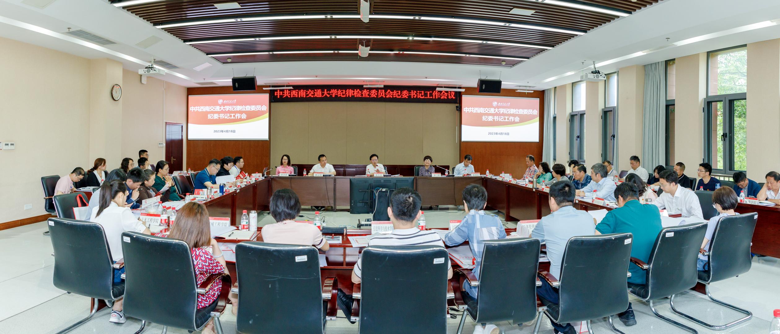 4月18日上午,学校纪委在犀浦校区综合楼272会议室召开纪委书记工作会议,深入学习习近平总书记重要讲话精神,贯彻落实学校党委2023年全面从严治党工作会议精神,布置安排2023年二级纪检工作。校党委副书记、纪委书记张学龙主持会议并讲话。