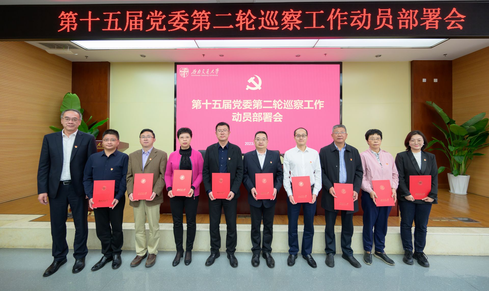 10月27日,学校第十五届党委第二轮巡察工作动员部署会在犀浦校区综合楼148会议室召开。校党委书记、巡察工作领导小组组长余敏明出席会议、作动员讲话并为巡察组组长副组长颁发聘书,党委组织部常务副部长、巡察工作领导小组副组长宋新宣布本轮巡察组授权任职及任务分工决定,校党委副书记、纪委书记、巡察工作领导小组副组长张学龙主持会议。