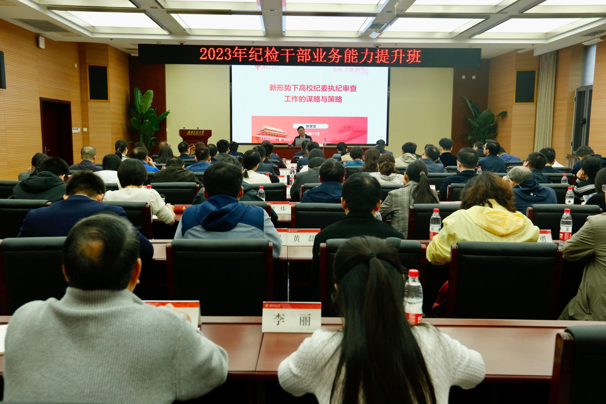 2023年11月3日上午,在犀浦校区综合楼148会议室,校党委副书记、纪委书记张学龙以“新形势下高校纪委执纪审查工作的谋略与策略”为题为2023年纪检干部业务能力提升班的全体学员作辅导报告。