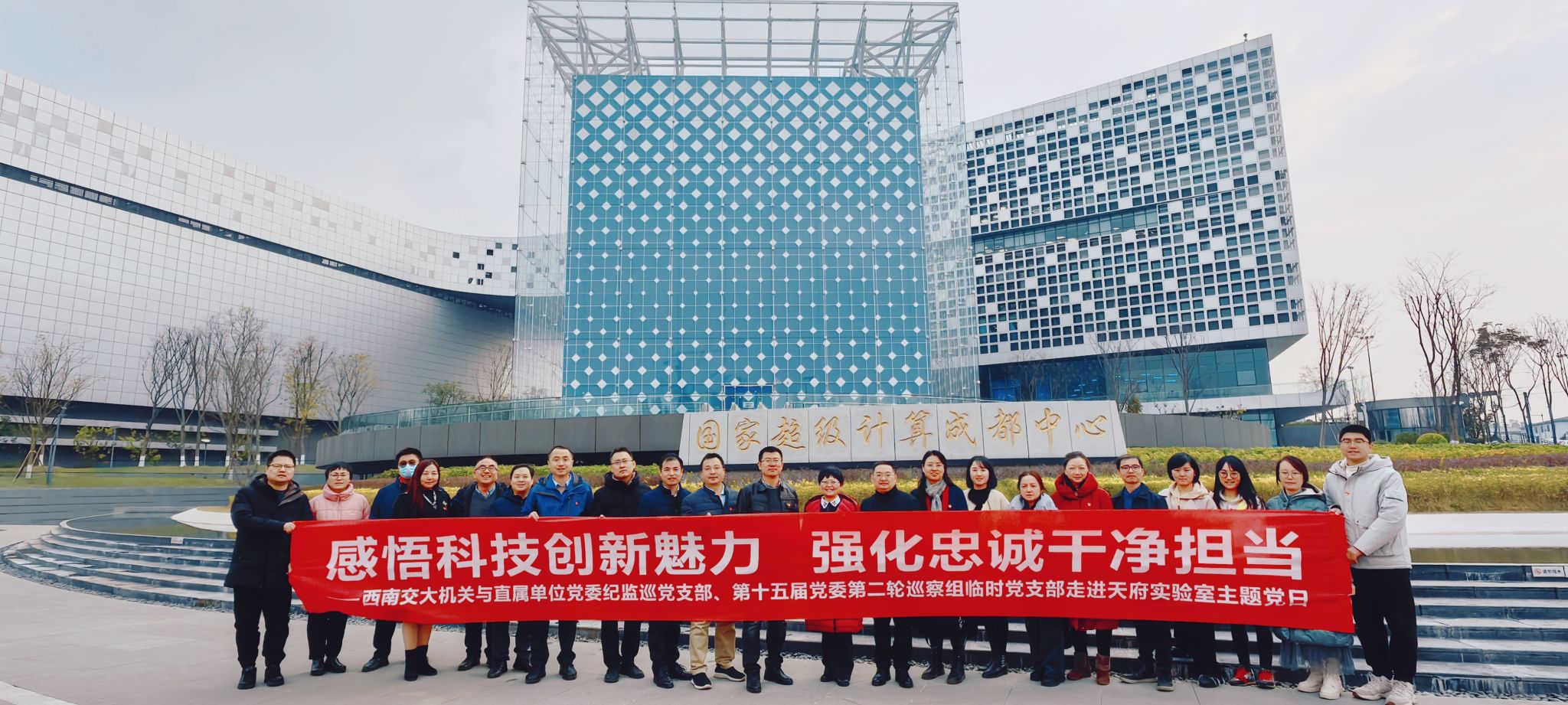 12月21日下午,机关与直属单位党委纪监巡党支部和第十五届党委第二轮巡察组临时党支部前往天府实验室,走访天府新区的公园城市展厅、国家超级计算成都中心、清华四川能源互联网研究院,开展“感悟科技创新魅力 强化忠诚干净担当”主题党日活动。两个支部的党员同志们在参观学习中,认真学习习近平生态文明思想,以及总书记关于加快教育强国、实现科技自立自强的重要论述,亲身感悟习近平新时代中国特色社会主义思想在城市建设和科技创新中的生动实践,增强了以高质量纪检监察巡察工作服务保障学校事业健康发展的责任意识。机关与直属单位党委书记沈哲,副书记、纪委书记陈璐受邀参加此次活动。