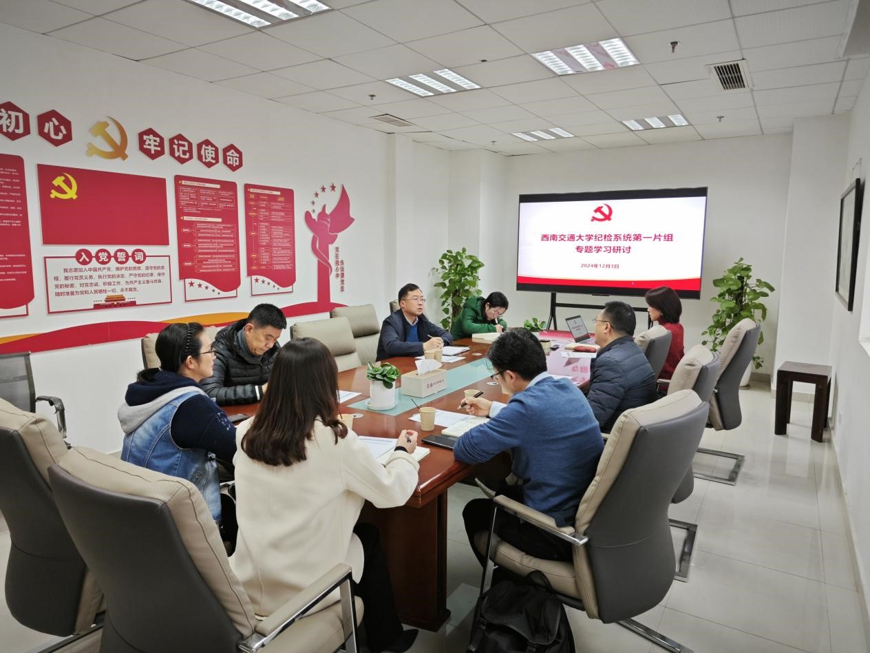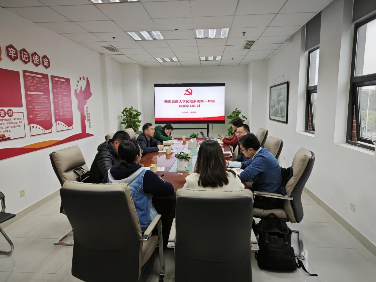 12月4日上午10点,学校纪检系统第一片组在犀浦校区电气馆10228会议室开展了集体研讨。校纪委副书记兼监察处处长郝辽钢到会指导。电气学院纪委书记王轶、医学院纪委书记于楠、体育学院纪委书记王婉、离退休工作处纪委书记谢彬、城市轨道交通学院纪委书记夏夏、卓越工程师学院纪委书记陈志伟以及第一片组各单位纪委委员参加学习研讨。会议由第一片组组长王轶主持。