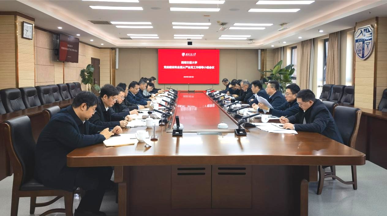 12月31日,学校党的建设和全面从严治党工作领导小组会议在犀浦校区综合楼603会议室举行。校党委书记、党的建设和全面从严治党工作领导小组组长余敏明主持会议并讲话,校长、党委副书记闫学东,党委副书记杨爱华,党委副书记、纪委书记夏玉峰,党委副书记高平平,党委常委、统战部部长汪铮以及党的建设和全面从严治党工作领导小组成员单位主要负责人参加会议。