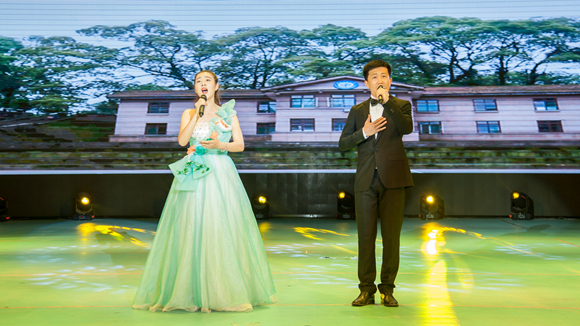竺可桢书院黄玉佳老师及学工部张力老师带来的作品《峨眉月》是由我校桂富强老师作词、甘霖老师作曲的带有四川山歌风格的歌曲,全曲洋溢着乐观而自豪的情感,突出了一位交大老师对教育事业、对交大的热爱!