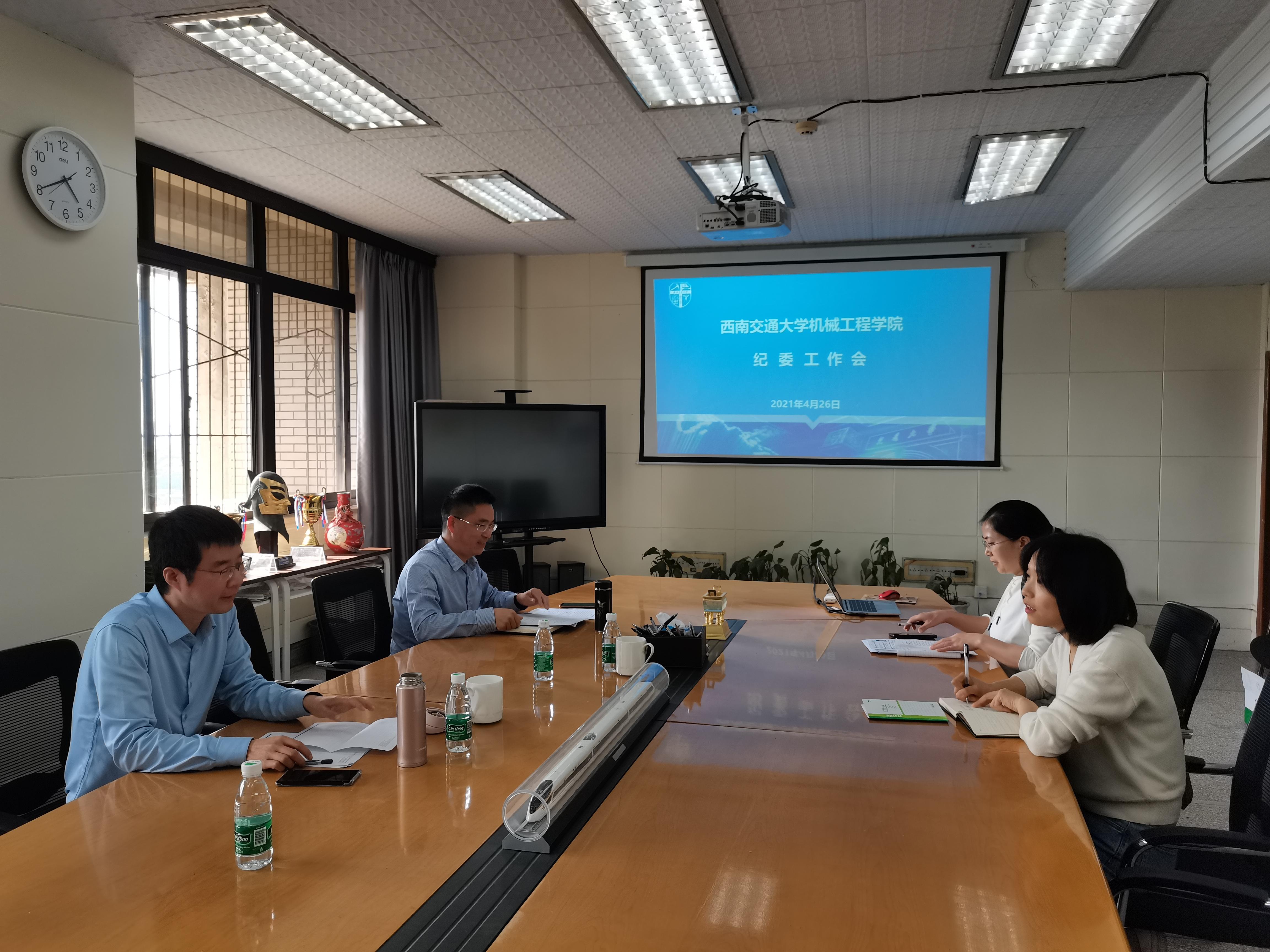 2021年4月26日下午,机械工程学院纪委在九里校区信息楼1404会议室召开2021年度工作研讨会。会议由纪委书记程军主持,纪委委员袁艳平、蒋群华、李艳梅参加会议。