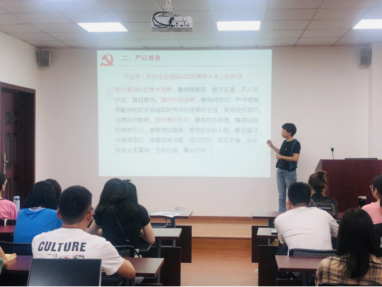 讲座伊始,高凡书记以自身的图书馆任职经历为例,引出了严以修身的重要性,贴近同学们的生活,亲切有趣且有说服力。以图表为辅,高书记生动说明了有德有才方为“精品”,有德无才是“次品”,无才无德是“废品”,有才无德是“危险品”的道理。这些简单却特征突出的形容,加深了同学们对于“德”与“才”关系的理解。前有“三不朽”,即“立德、立功、立言”,“立德”于三者中居首位,今有习近平总书记在纪念五四运动100周年大会上强调的“党员干部什么都能缺,就是不能缺德”,这些都充分论证了“德”的重要性。