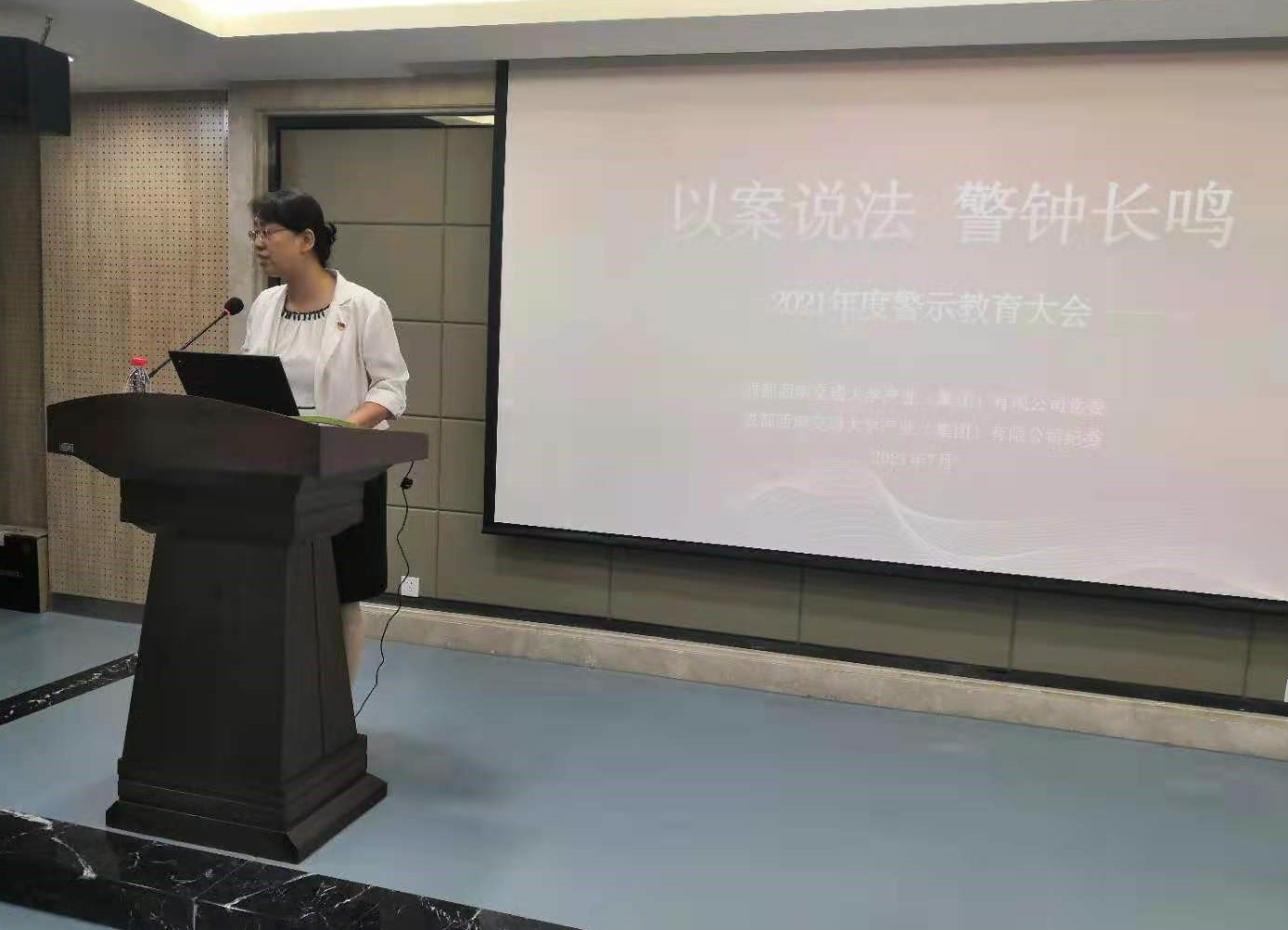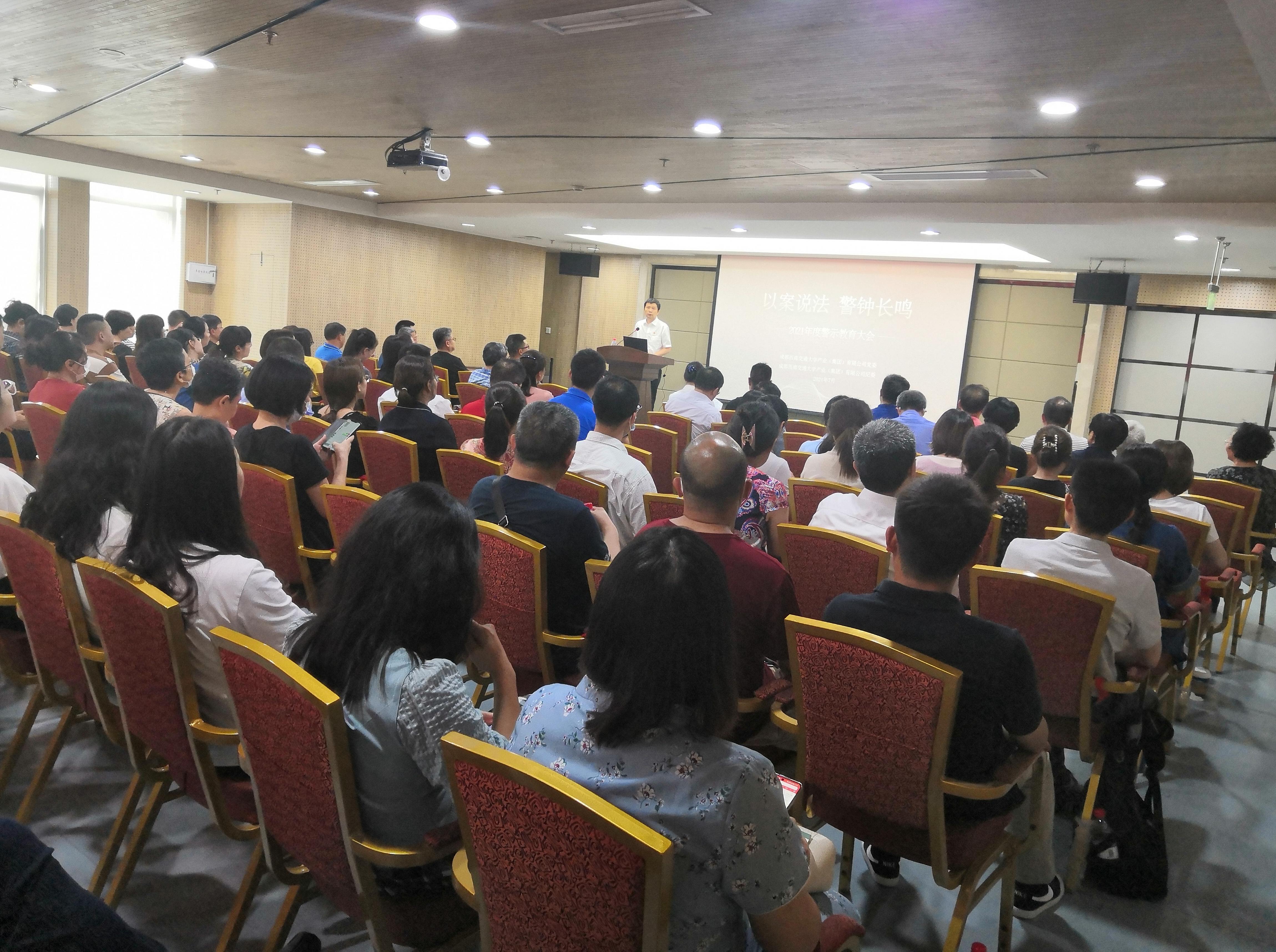 为持续推进产业集团党风廉政建设,建立健全教育、制度、监督并重的惩治、预防机制,推动集团公司及所属企业各项工作任务圆满完成,按照学校党委、纪委的相关要求,2021年7月6日下午,学校纪委和集团公司党委、纪委举办了警示教育大会。学校纪委副书记兼纪委办公室主任李琦、纪委办公室副主任兼校纪委案件监督管理室主任秦文臻专赴集团开展“以案说法,警钟长鸣”警示教育。