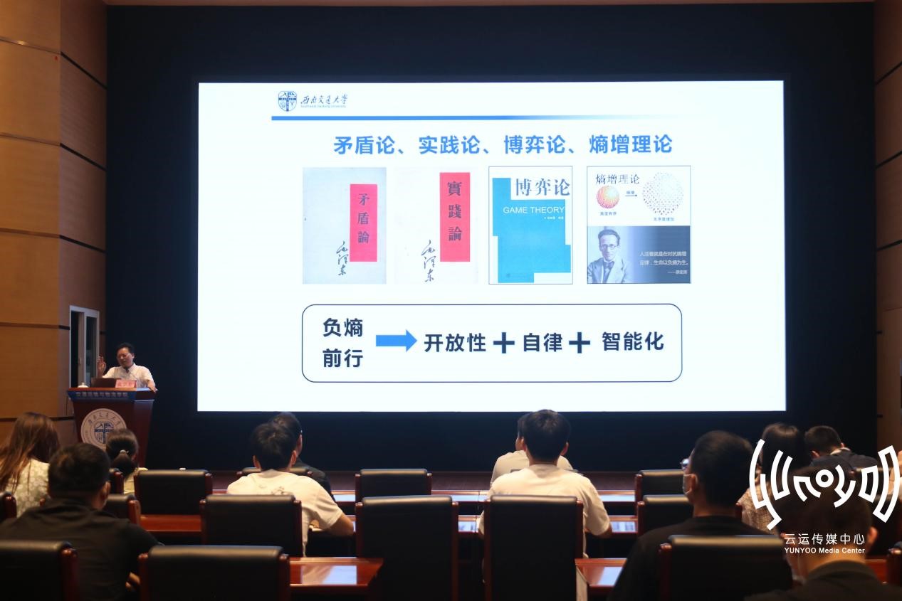 课程伊始,张学龙书记向大家介绍了人生“四论”——《矛盾论》、《实践论》、《博弈论》和《熵增理论》。他讲到,读《矛盾论》,要从中得到启发,学会在纷繁复杂的局面中抓住主要矛盾,学会做选择;读《实践论》,要对认识与实践、理性与感性的循环往复进行深度思考,使自己具备“实事求是”的修养;读《博弈论》,一方面是对自我如何处理好各种人际关系做一种认知,另一方面也能够帮助自己理解问题,判断孰是孰非;读《熵增理论》,学会对抗熵增,利用开放、自律、智能化三个原则,做到负熵前行。进而引出了“清廉人生路,迈好第一步”的课程主题,从“四论”中吸取文化,建构人生框架,找到人生的原则、底线和方向,为开启人生新阶段打下良好的基础。