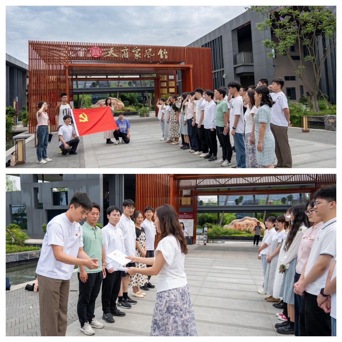 参观结束后,选调生代表及毕业生党员代表在党旗下重温入党誓词,教工机关党支部代表余晓珂老师向选调生代表赠送《中国共产党纪律处分条例》,希望选调生同志们能在今后的学习生活中继续加强党纪学习教育,做到学纪、知纪、明纪、守纪,始终做到忠诚干净担当。