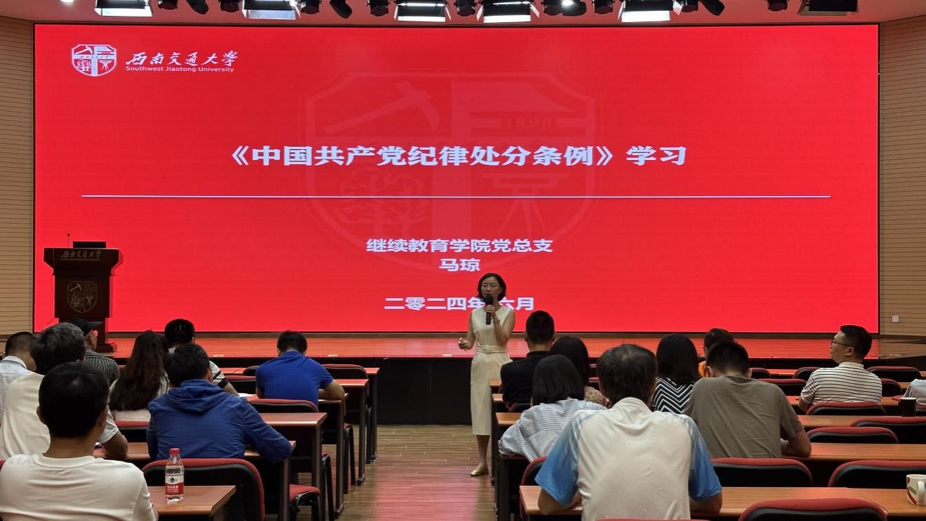为深入开展党纪学习教育,进一步增强全体教工党员的纪律意识,提高党性修养,6月6日下午,继续教育学院党总支开展《中国共产党纪律处分条例》集体学习会,由党总支副书记、纪检委员马琼主讲党课。此次党课不仅回顾了条例的修订历史,强调了其重要意义,还深入解读了条例中的五个原则、六种从轻减轻情形,并通过以案说纪的方式强调了政治纪律的重要性。