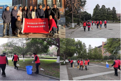 在校纪委副书记兼巡察办主任李立、第一巡察组组长杨韬、第二巡察组组长苏小桦和第三巡察组组长陈勇的带领下,全体党员清洗了竢实扬华墙、校友雕像,清扫了落叶,还用清扫的落叶绘制出“跨越式发展”“五角星”等图案,表达对伟大祖国和亲爱母校的美好祝愿。劳动开始前,全体党员还在竢实扬华墙、孙中山先生塑像以及林同炎、刘恢先、严恺等杰出校友雕像前,回顾了学校跨越世纪因铁路而生、因铁路而兴的百年历程,重温了校友们为国家建设和学校发展所做出的突出贡献。