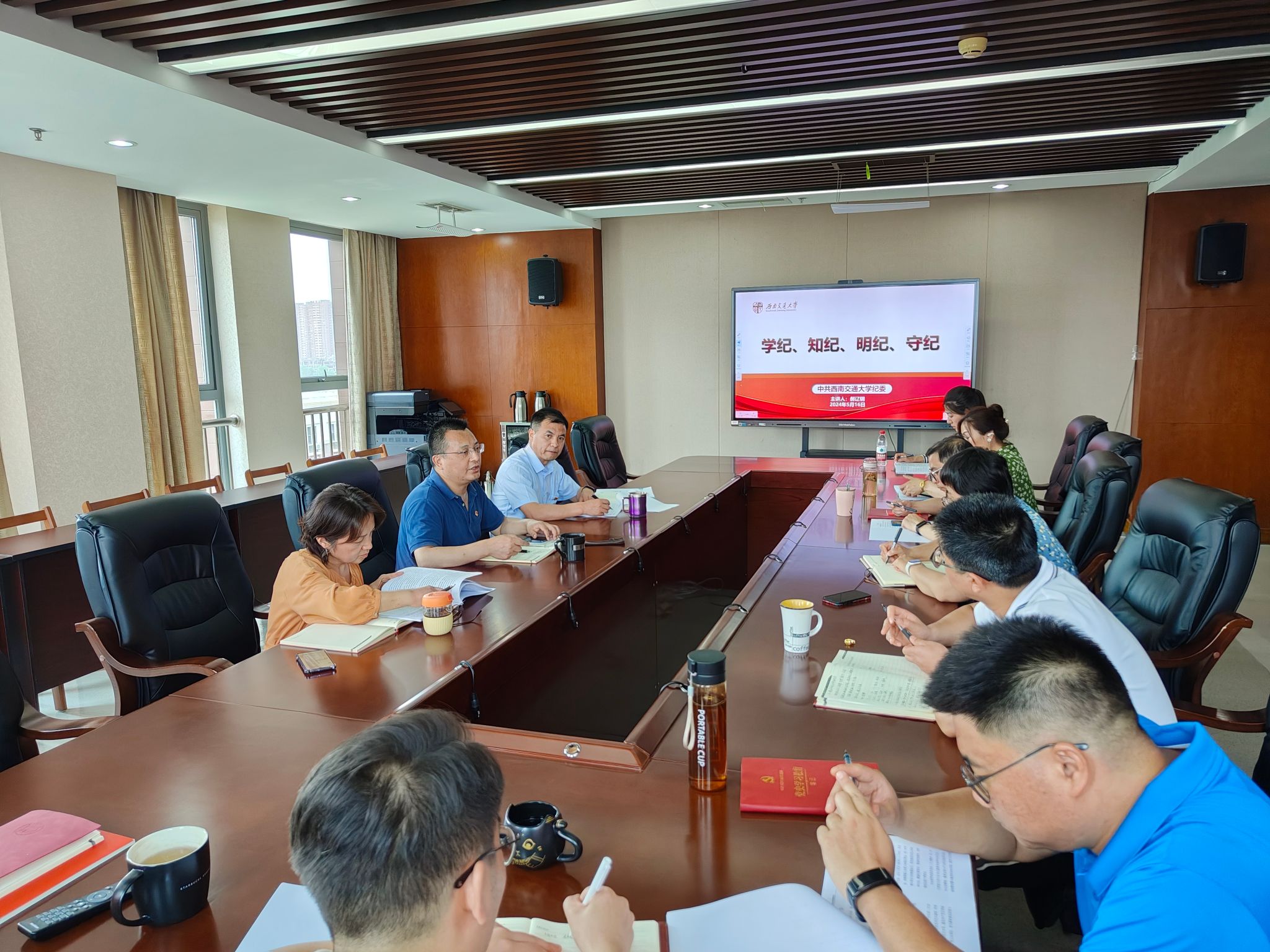 为扎实推进党纪学习教育,机关与直属单位党委纪监巡党支部5月16日下午在犀浦校区综合楼711会议室开展了单位领导班子读书班专题导学、支部党员集体研学。本次导学由支部书记郝辽钢主讲。