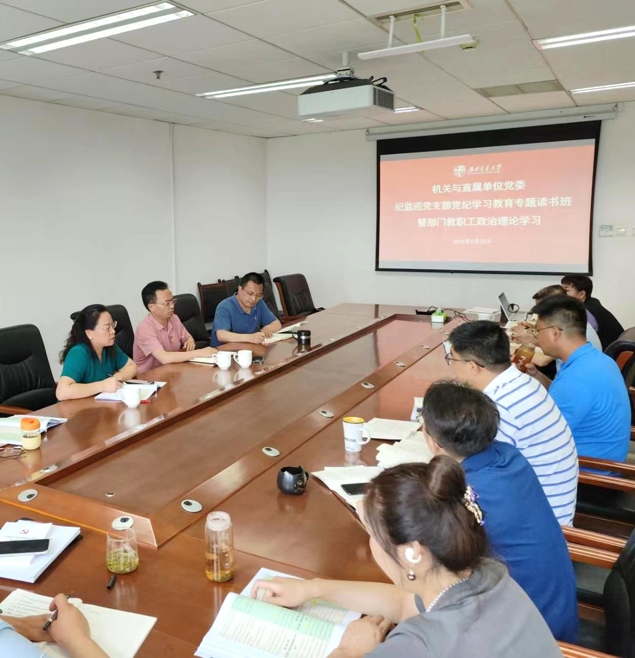 5月23日下午,纪监巡党支部党纪学习教育专题读书班暨部门教职工政治理论学习在犀浦校区综合楼505会议室开展,会议由纪监巡党支部书记郝辽钢主持。校党委副书记、纪委书记张学龙同志以普通党员身份参加学习。