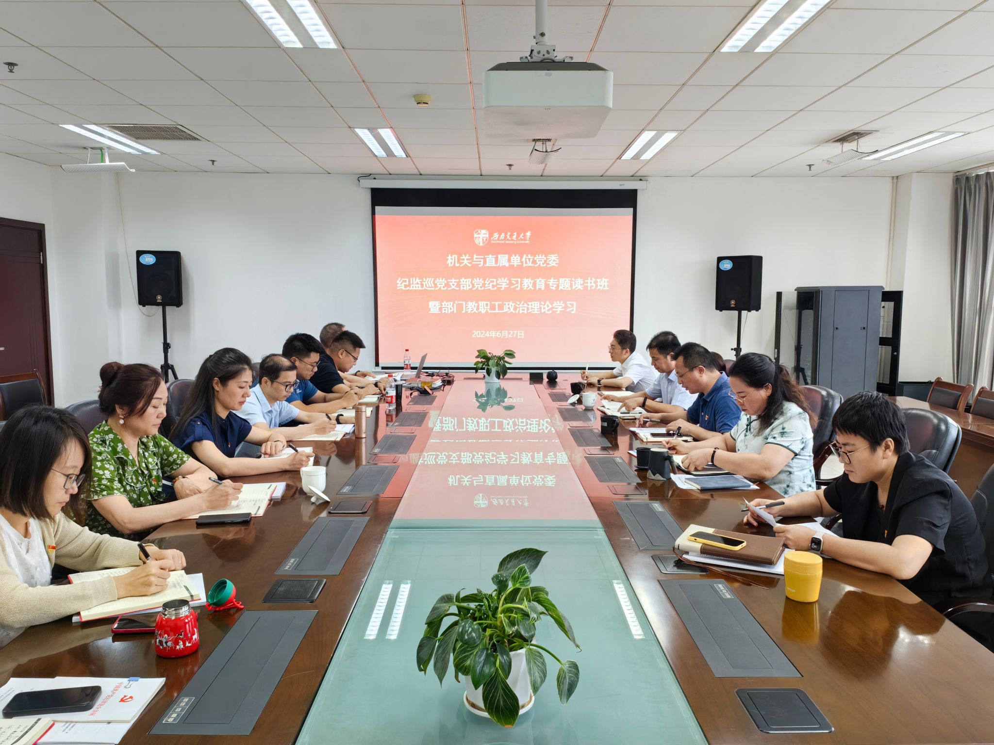 6月27日上午,纪监巡党支部党纪学习教育专题读书班暨部门教职工政治理论学习在犀浦校区综合楼401会议室开展,会议由党支部书记郝辽钢主持。