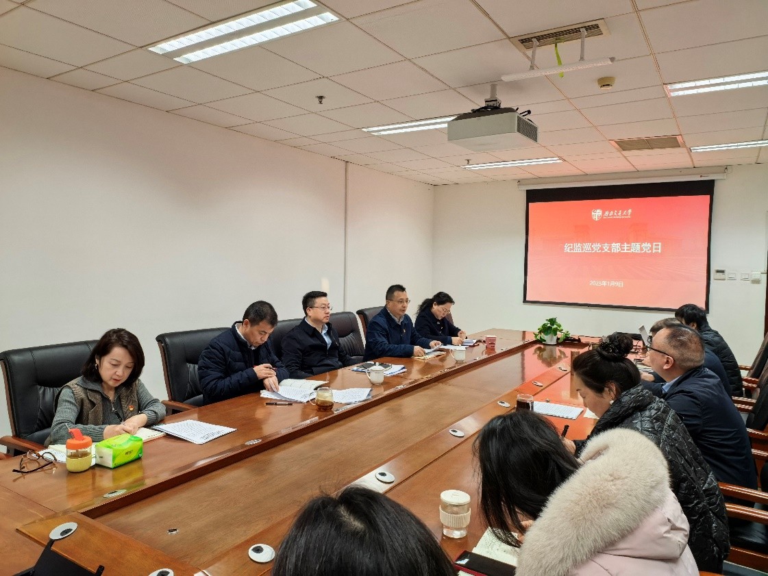 1月9日上午,纪监巡党支部在犀浦校区综合楼505会议室组织开展了主题党日,由党支部书记郝辽钢同志主持。校党委副书记、纪委书记夏玉峰同志以普通党员身份参加学习。